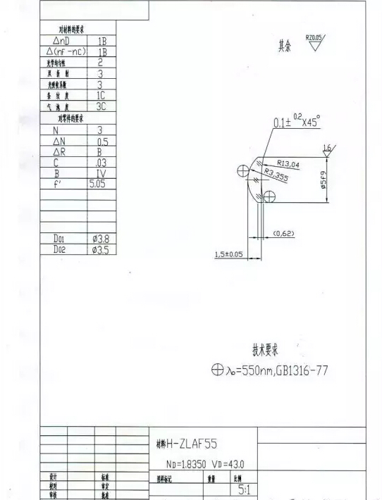光學(xué)零件的外形尺寸、材料、技術(shù)要求及其特性