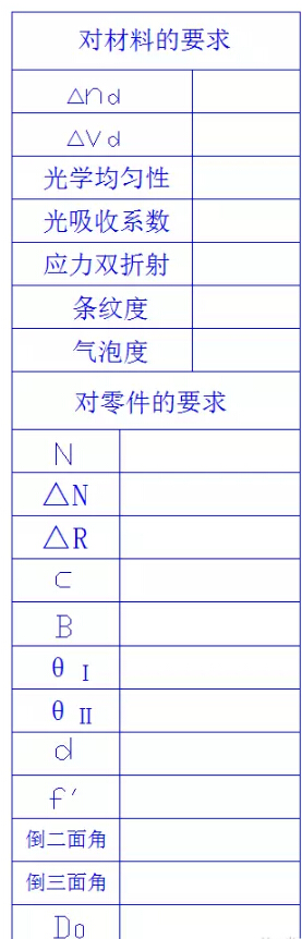 光學(xué)零件圖的專用表格