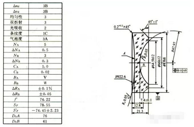 光學(xué)零件圖的內(nèi)容: