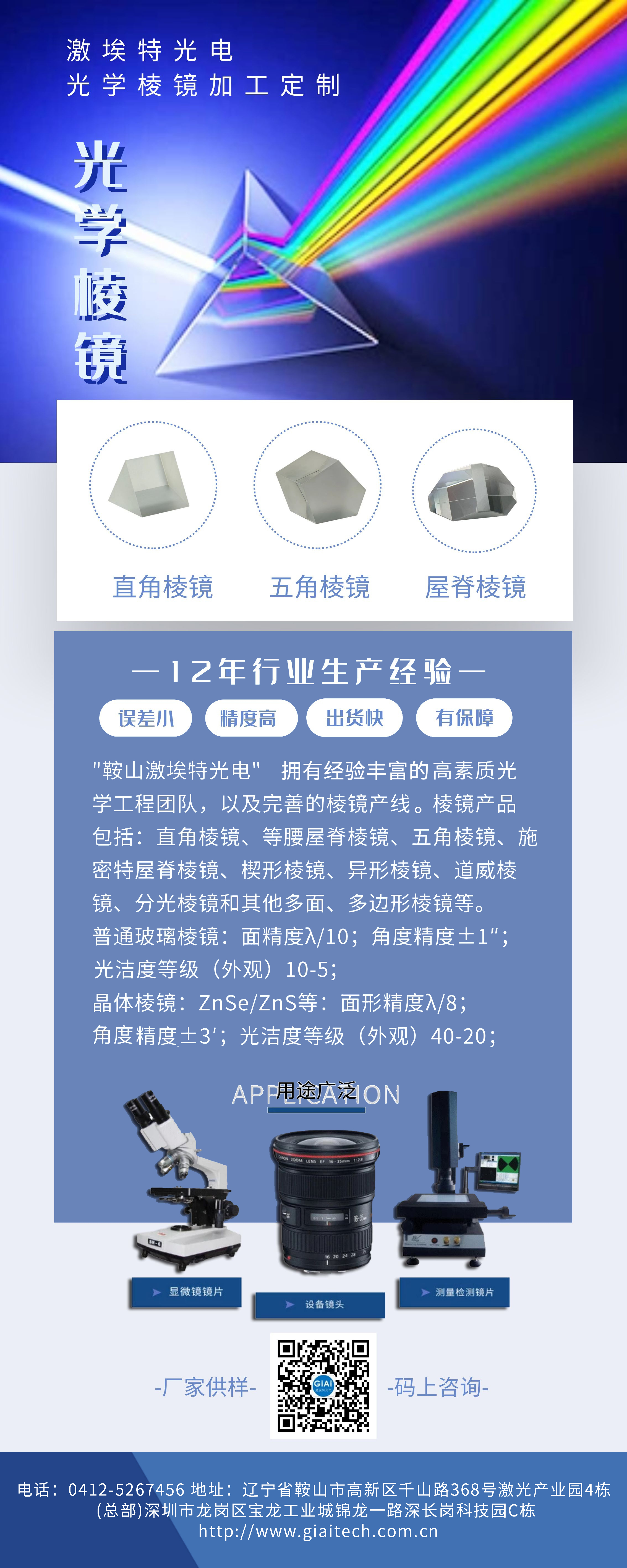 在潛望鏡、雙目望遠(yuǎn)鏡等儀器中改變光的進行方向,從而調(diào)整其成像位置的稱“全反射棱鏡”,一般都采用直角棱鏡。