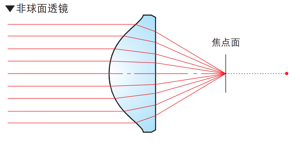 非球面透鏡是一種折射面為非球面的曲面的透鏡,這種透鏡具有更佳的曲率半徑,可以維持良好的像差修正,以獲得所需要的性能,一般可分成簡(jiǎn)單曲面(如拋物面)和復(fù)合曲面兩類。經(jīng)過復(fù)雜計(jì)算的非球面透鏡,可用于透鏡組球面像差的校正。由于非球面表面經(jīng)適當(dāng)?shù)膹?fù)合,可使透鏡中央為正,邊緣為負(fù),因而可以同時(shí)具有多種校正功能,并在理論上可使球面像差減少至0。