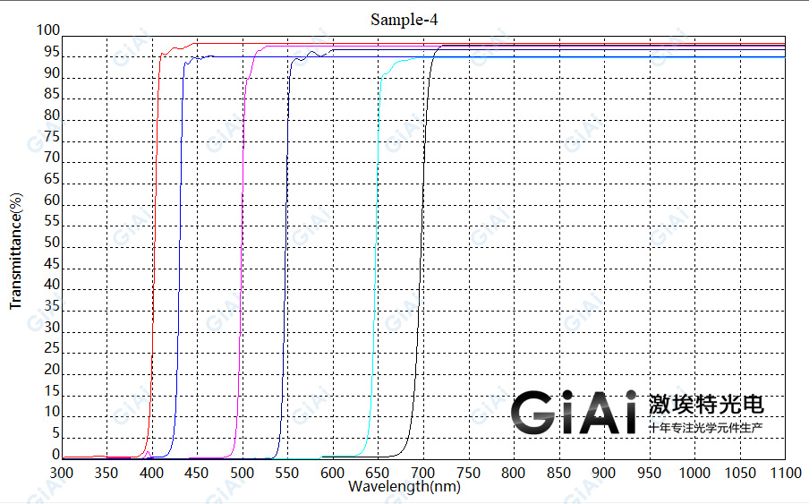 ? ???與傳統(tǒng)的有色光學(xué)玻璃濾光片相比, 我公司生產(chǎn)的短波通及長(zhǎng)波通濾光片具有截止陡度大、透過(guò)率高以及背景光密度大的優(yōu)勢(shì),而且同傳統(tǒng)光學(xué)玻璃的方法完全不同的一點(diǎn),當(dāng)入射角變化時(shí)(從0度向大角度轉(zhuǎn)動(dòng)),特征截止波長(zhǎng)將會(huì)向短波方向移動(dòng)。這個(gè)功能可以應(yīng)用在系統(tǒng)微調(diào)方面,并能夠得到您所需的波長(zhǎng)。