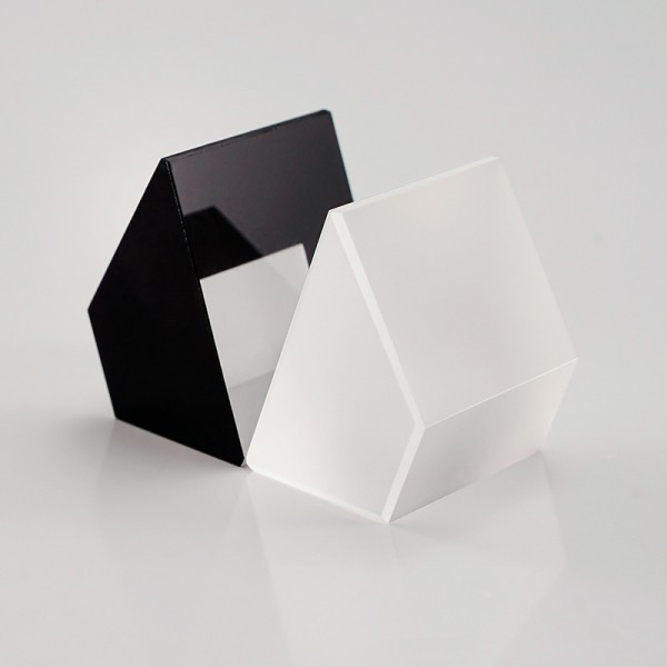 梯形棱鏡是一種像旋轉(zhuǎn)器。光線經(jīng)過(guò)此棱鏡后,此像被顛覆。另外,使此棱鏡以其光軸為軸旋轉(zhuǎn)時(shí),像的旋轉(zhuǎn)角為棱鏡旋轉(zhuǎn)角的兩倍。一般而言,梯形棱鏡是利用臨界角原理實(shí)現(xiàn)內(nèi)部全反射,所以其視場(chǎng)角有限。同時(shí),保持反射面清潔和使用平行光很重要。不鍍膜的梯形棱鏡主要用于光機(jī)系統(tǒng)內(nèi)做圖象旋轉(zhuǎn);鍍膜的梯形棱鏡主要是在反射面鍍鋁反射膜,在入射面鍍?cè)鐾改?,用于成像系統(tǒng)內(nèi)。
