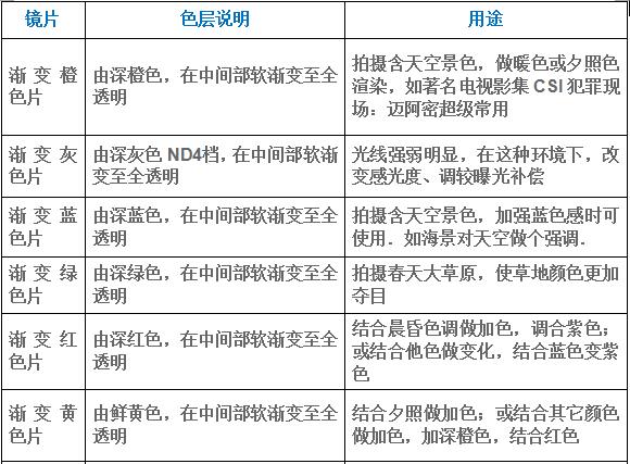 漸變鏡分為灰色漸變鏡、各種顏色漸變鏡等多種