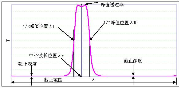 窄帶濾光片的參數(shù)描繪: